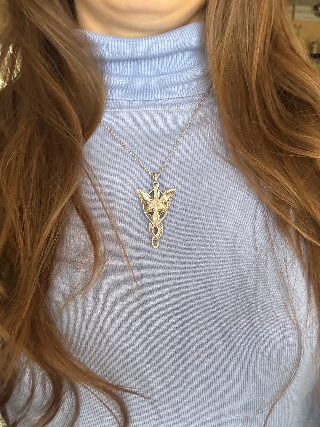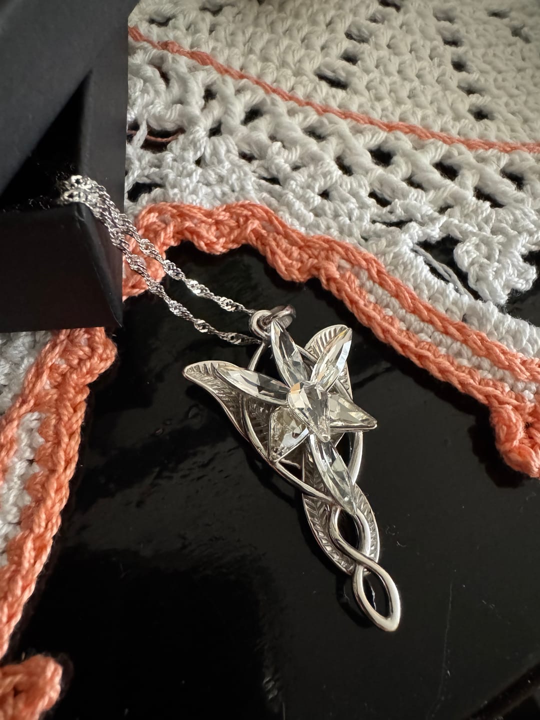 The Evenstar Necklace is a beautifully crafted piece inspired by Arwen’s iconic pendant from The Lord of the Rings. It symbolizes eternal love, grace, and the bond between Middle-earth and immortality.